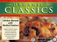 Chicken Marsala: Chicken Medallions* (Chicken breast with rib meat*, sea salt, natural flavor (from oregano) [breaded with: wheat flour*, sea salt, garlic*,white pepper*, herbs*, cayenne pepper*, breading is set in expeller pressed vegetable oil*]), water, Mushrooms*, Marsala Wine, Butter* (pasteurized sweet cream*, salt), Unbleached Bread Flour* (wheat flour*), Apple Juice…